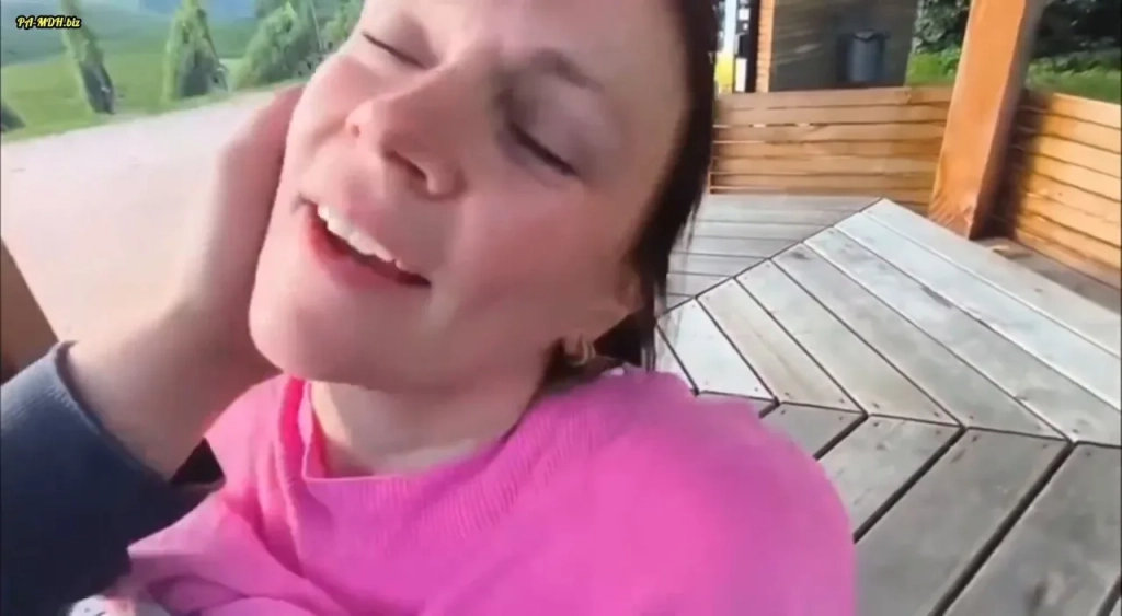 Saskialove87 is a curvy brunette with long hair, big natural tits, and pierced nipples, taking it hard in the middle of a vineyard. Scene starts on a wooden deck in bright daylight — she’s bent over, ass hanging off the edge, getting pounded from behind doggy style. Camera stays close, mostly POV, giving clear shots of her ass slapping back against his hips and her tits bouncing with each thrust. They move into the vines, switching to missionary with her legs up, deep penetration, mouths locked. She’s smiling, laughing between moans — looks like she’s actually enjoying it. Full natural setting, no music, just raw outdoor sex with solid camerawork on her body and the fucking.